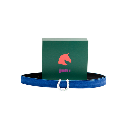 Pásek tmavě modrý s měnitelnou sponou podkova stříbrná se Swarovski kamínky