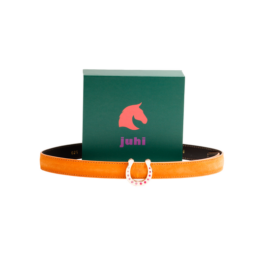 Pásek oranžový s měnitelnou sponou podkova zlatá se Swarovski kamínky
