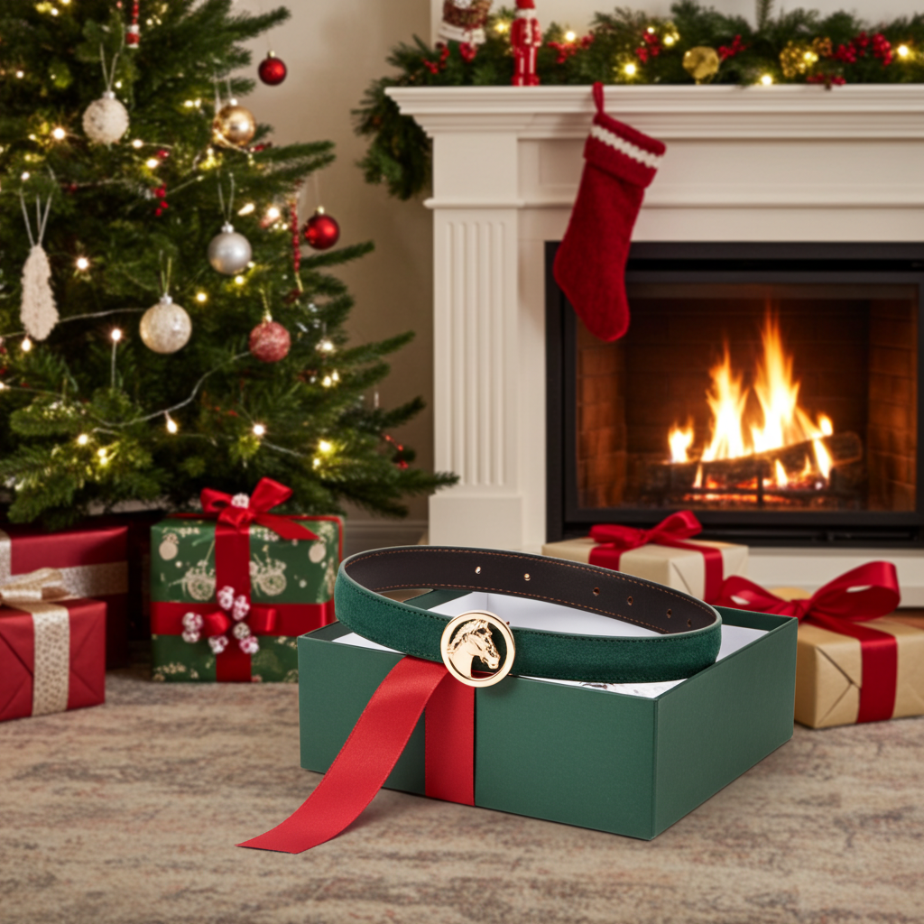 Pásek tmavě zelený s měnitelnou sponou hlava koně zlatá